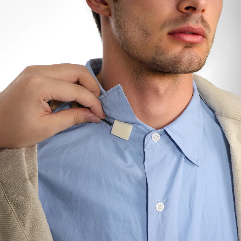 CineBuff foamies is a soft foam pad designed for lav mics, keeping them secure on skin or clothing. One side features ultra-soft, high-density foam that creates a small buffer between the mic and fabric, reducing friction noise for the best sound quality. The other side uses hypoallergenic adhesive with strong hold, sized just right to wrap neatly around the mic for a stable, discreet fit.