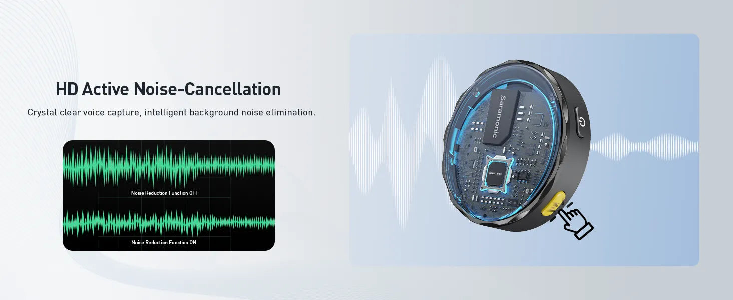 1단계: 송신기 측면에 있는 NR 버튼을 눌러 소음 제거 기능을 켜거나 끕니다.